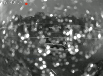 Figure 2: Screenshot of the red-dot camera during heavy rain and thunder. Vehicles are difficult to make out, and the red dot is triggered by a noise in the atmosphere.